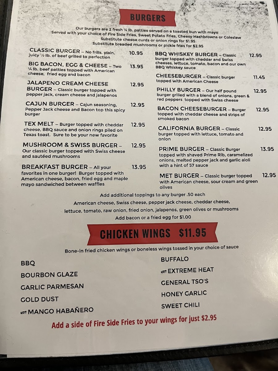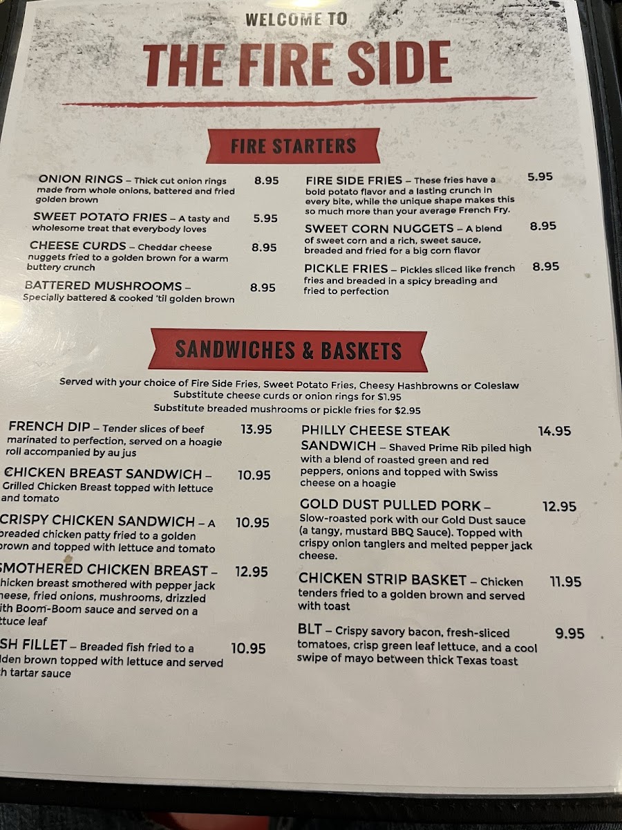 The Fire Side Menu sets the stage for comfort food that feels both familiar and a little indulgent, and it’s the first thing that catches your attention when you walk into this cozy spot on 513 Oregon Ave in Morris, MN. As you look through the selections, you’ll notice how everything leans into hearty, satisfying flavors-from burgers stacked just right to classics that warm you up on a cold Minnesota day. And while the dishes are straightforward, they’re put together with an attention to balance that keeps each bite interesting.